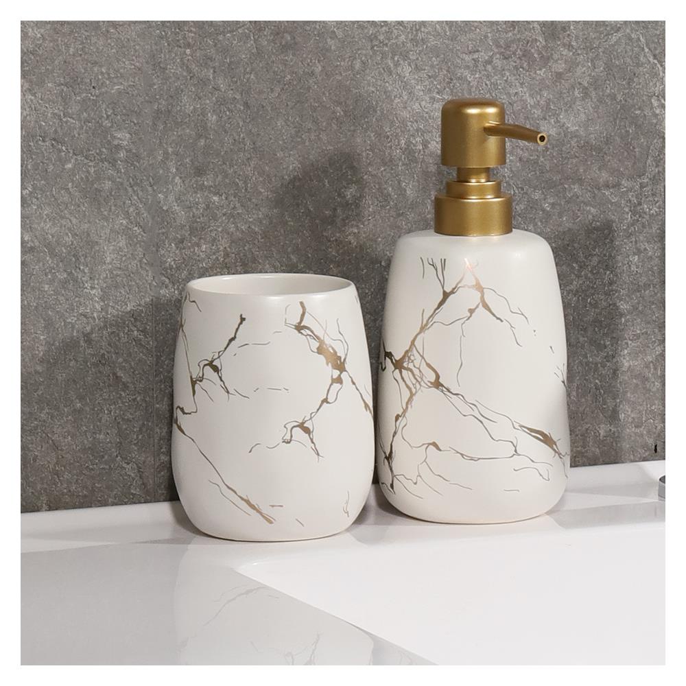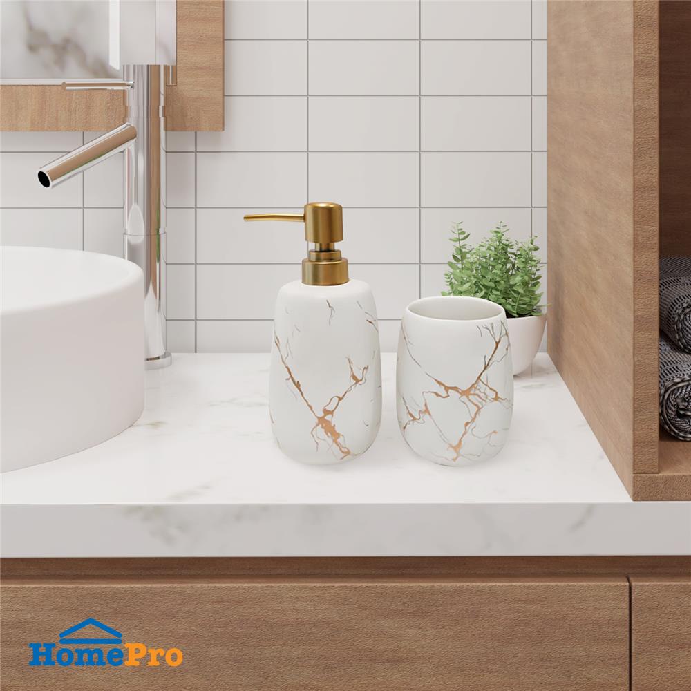 HomeBase MOYA Bộ đồ dùng phòng tắm 2 món bằng gốm HZ2010-283 W7,5xH18,5xD7,5 màu trắng