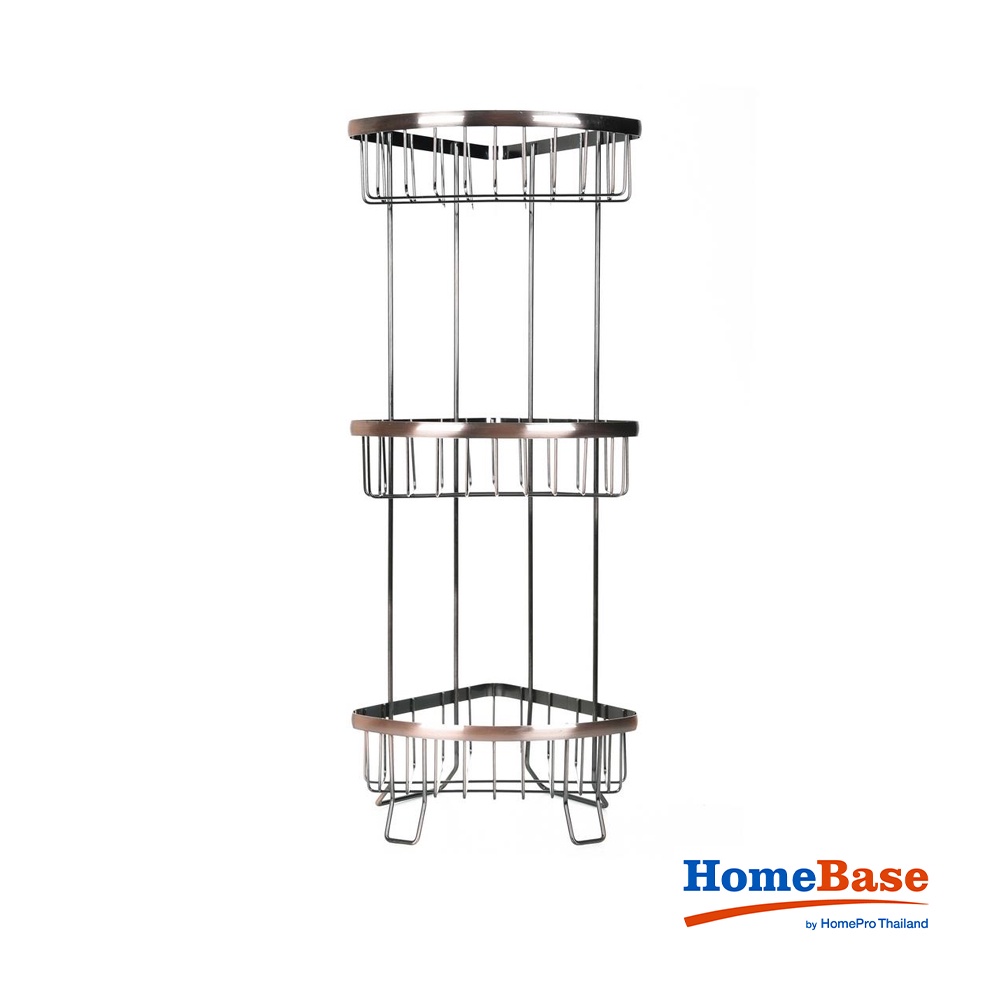 Nhà cửa & Đời sống > Đồ dùng phòng tắm > Kệ để đồ phòng tắm || HomeBase MOYA Giá nhà tắm 3 tầng bằng thép H1819C W27xD19.6xH66 Cm màu đồngCòn hàng