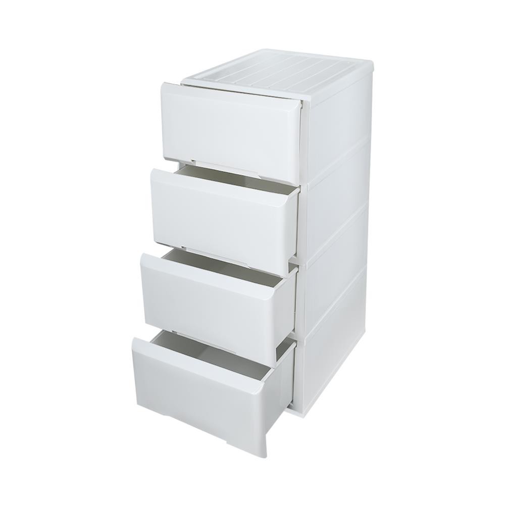 Đừng lo lắng khi mình đang sống trong một không gian không quá rộng vì nếu biết cách tối ưu, bạn vẫn dễ dàng đạt được sự thoải mái. Và việc đầu tiên chính là lựa chọn chiếc tủ nhựa 4 tầng này của shop. Mỗi tầng được thiết kế như một ngăn kéo với khoang đựng đồ rộng, phù hợp với đựng quần áo hay vật dụng thường ngày. Ngoài ra, thiết kế vuông vắn của kệ rất phù hợp với trang trí không gian, bạn có thể đặt thêm đồ trang trí, lọ hoa bên trên kệ để tăng thêm tính thẩm mỹ cho không gian.- Tủ nhựa với các ngăn làm bằng nhựa trắng không trong suốt