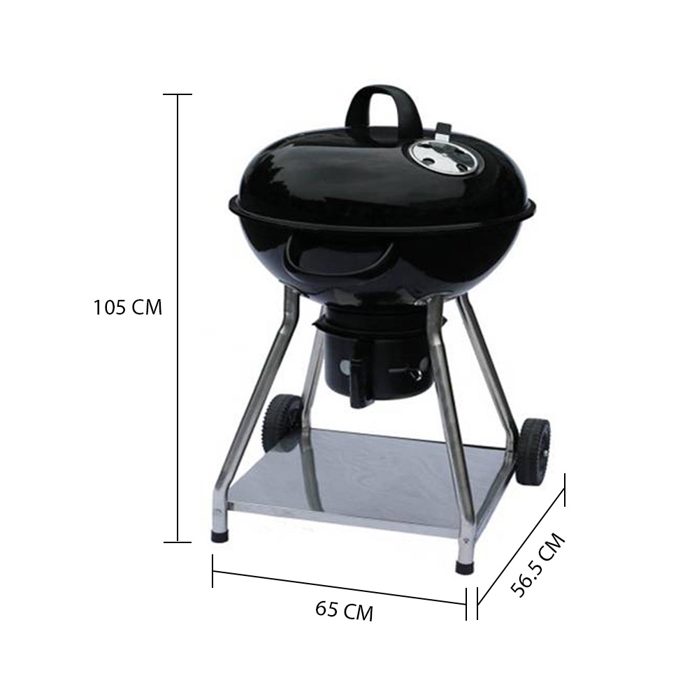 HomeBase SPRING Bếp than nướng BBQ bằng thép có nắp W56,6cmxH105xD65cm màu đen