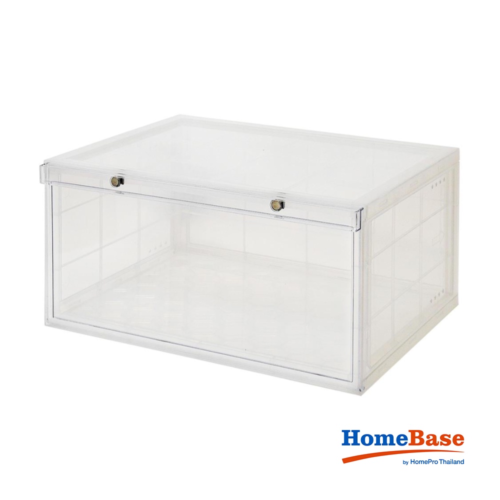 Giới thiệu HomeBase STACKO Hộp đựng giày bằng nhựa nắp khóa nam châm Thái Lan W37xH18.3xD28cm màu trắng