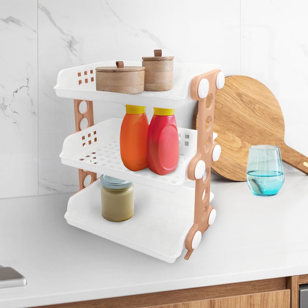 Nhà cửa & Đời sống > Nội thất > Tủ bếp || HomeBase STACKO kệ nhựa 3 tầng bằng nhựa Thái Lan ME W46.7xH52.3xD26.5cm màu trắng/camCòn hàng