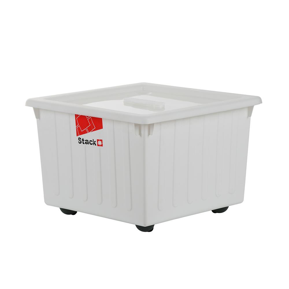 HomeBase STACKO Thùng nhựa đa năng có nắp đậy và bánh xe Thái Lan 28.5L W39.5xD39.5xH27.5 Cm Trắng