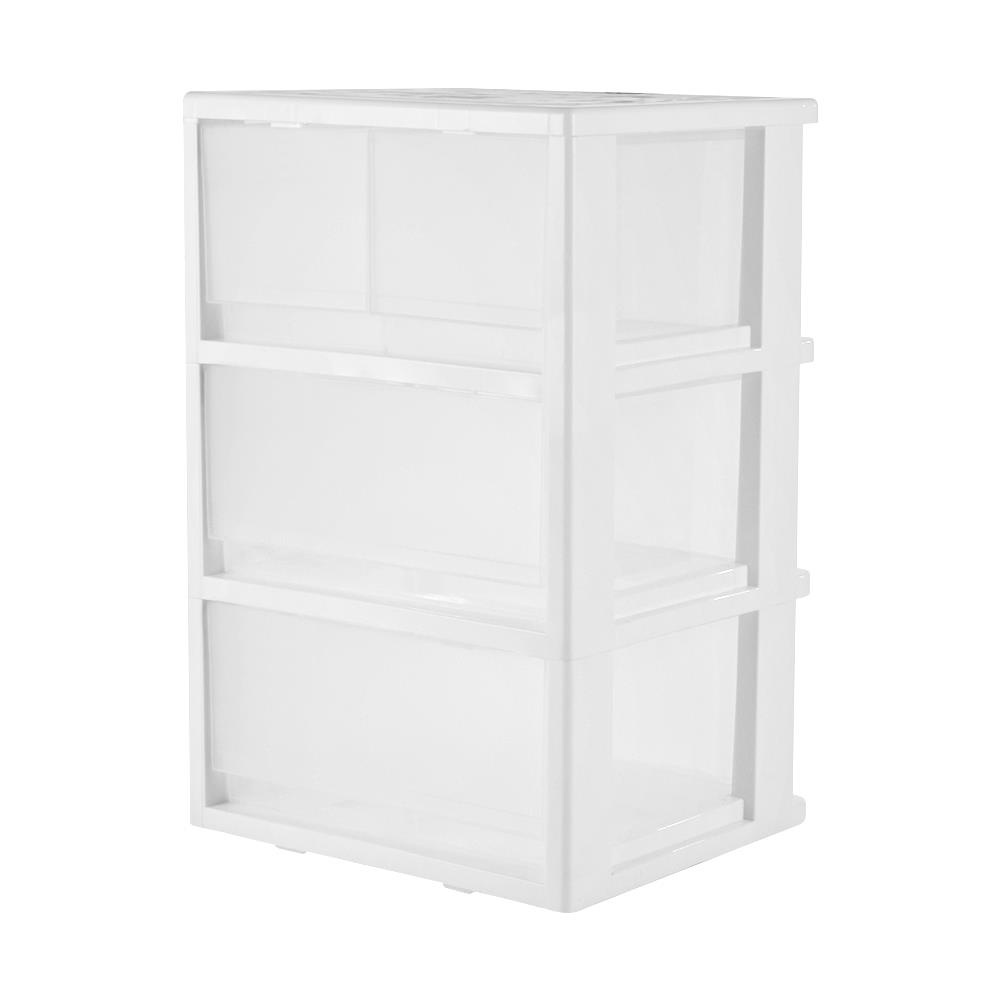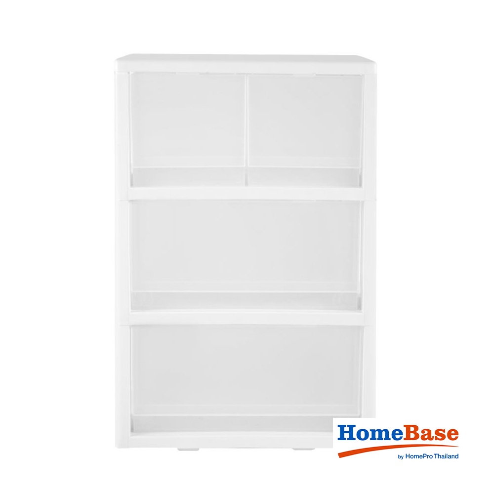 HomeBase STACKO Tủ nhựa 3 ngăn kéo có bánh xe FINE Thái Lan W42xH64xD36 màu trắng trong