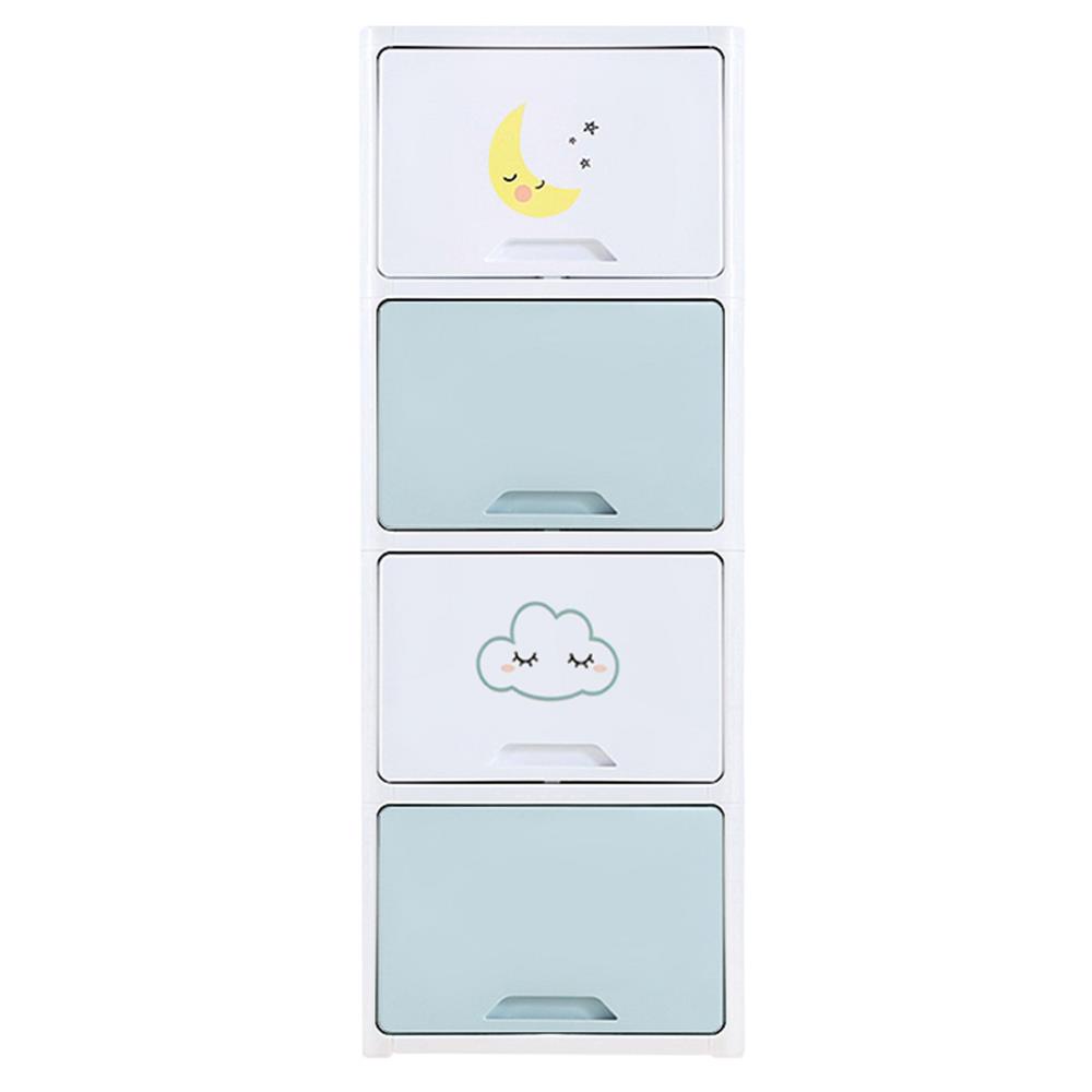 HomeBase STACKO Tủ nhựa 4 ngăn kéo hoạt hình TINY W45xH119xD32cm xanh dương pastel