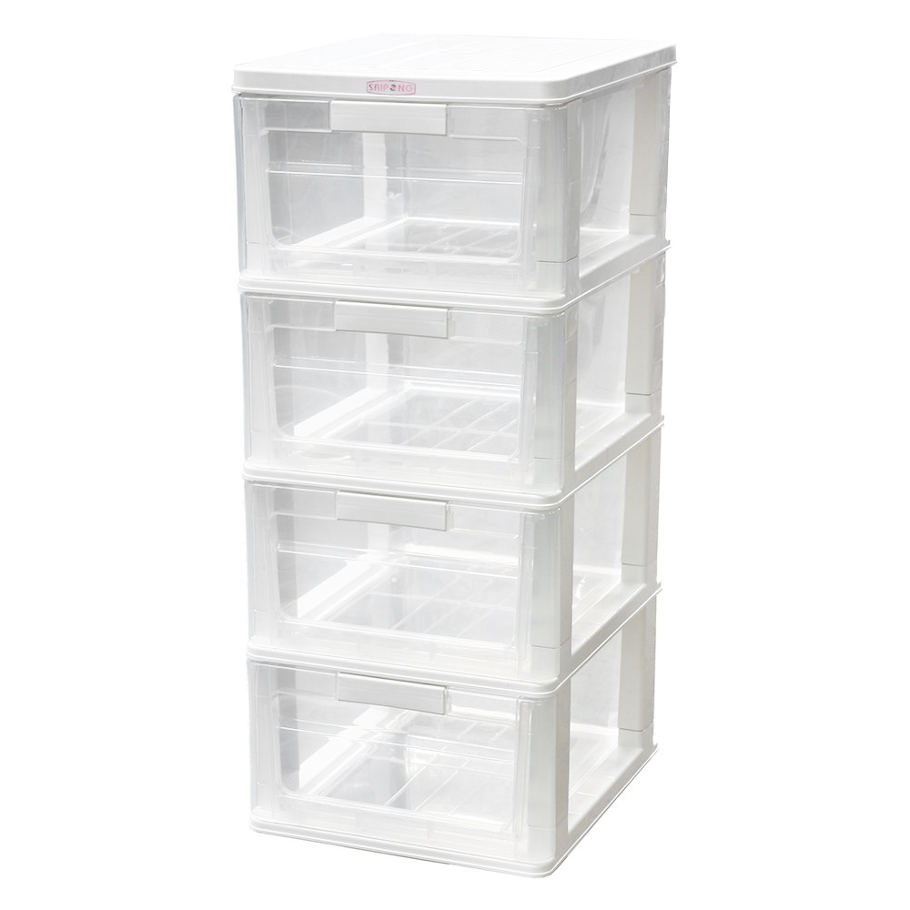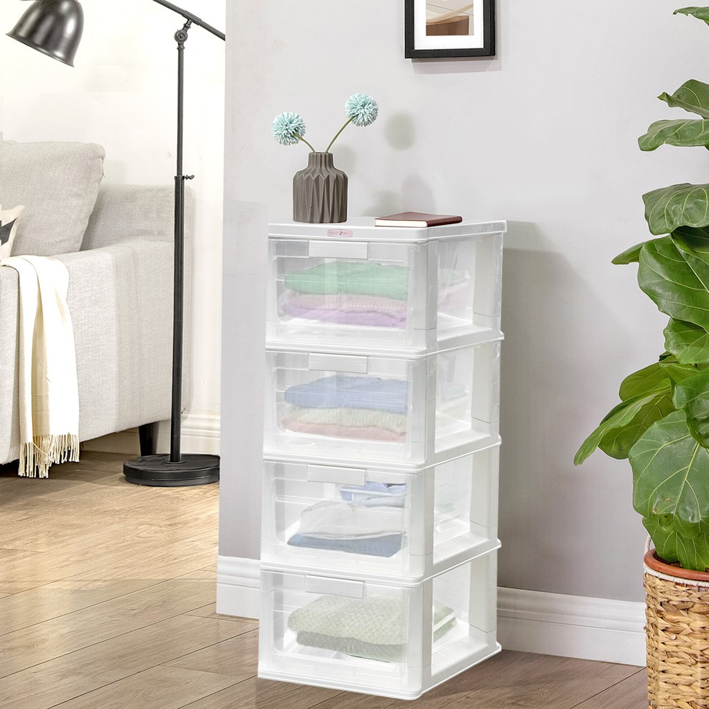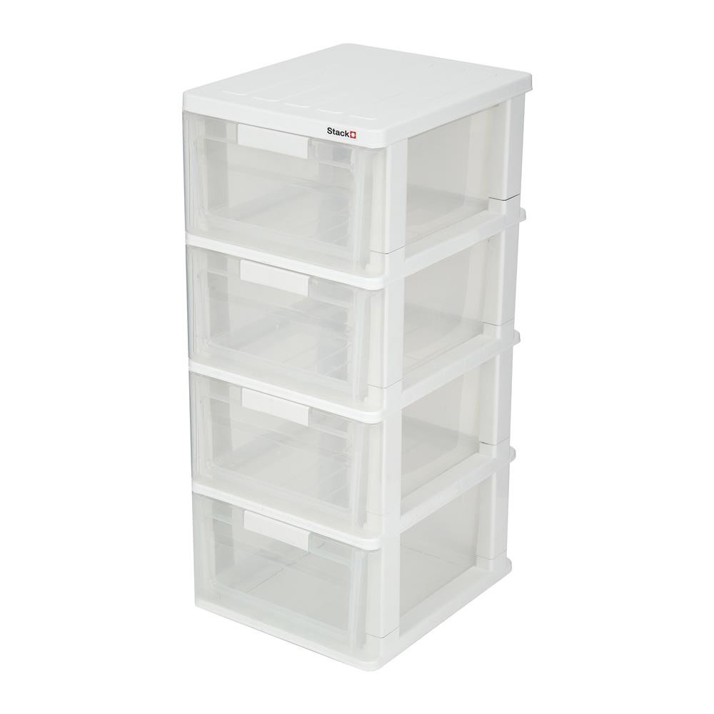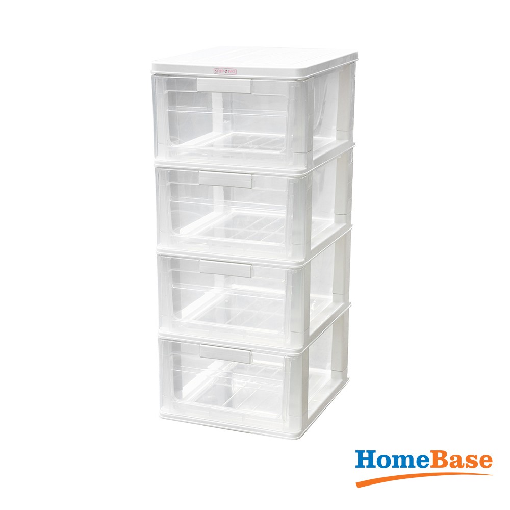 HomeBase STACKO Tủ nhựa 4 tầng Thái Lan W40xD34xH80 Cm màu trắng trong