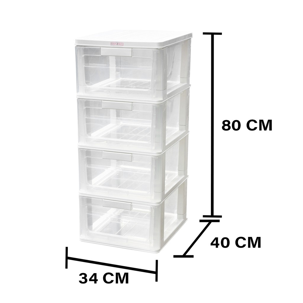 Giới thiệu HomeBase STACKO Tủ nhựa 4 tầng Thái Lan W40xD34xH80 Cm màu trắng trong