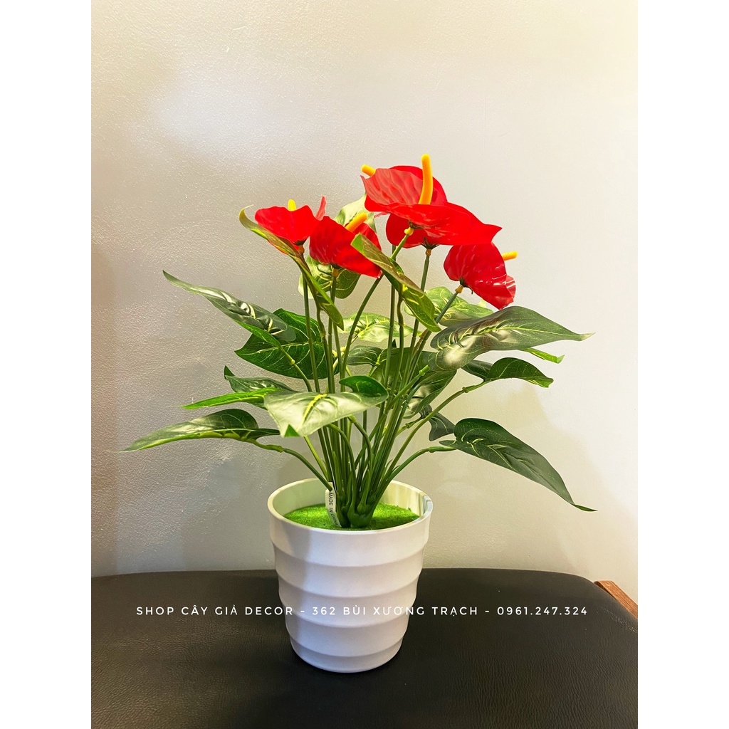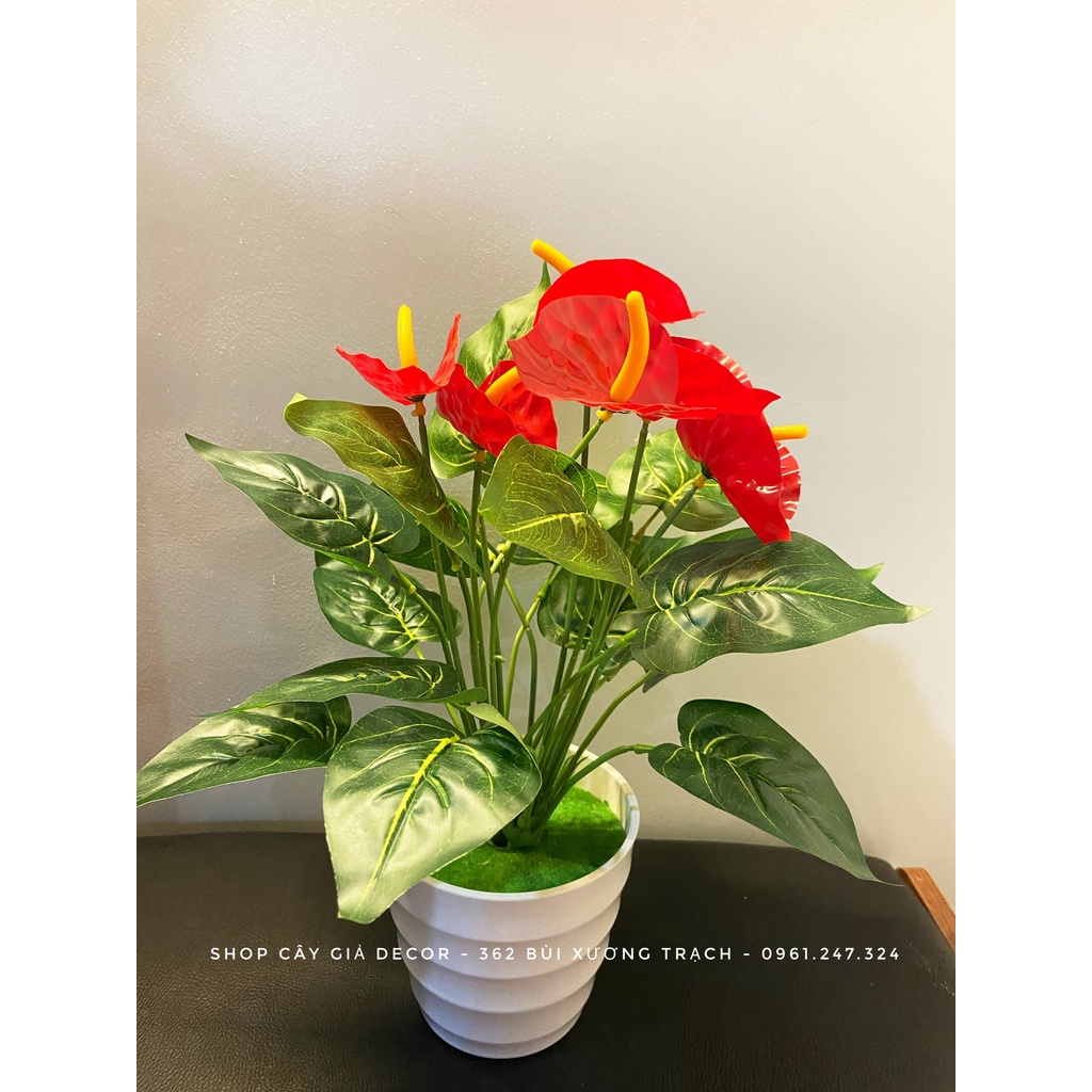 Nhà cửa & Đời sống > Trang trí nhà cửa > Hoa trang trí || cây hồng môn (2 cụm) cao 35cm - Chậu cây để bàn trang trí nhà cửa, văn phòngCòn hàng