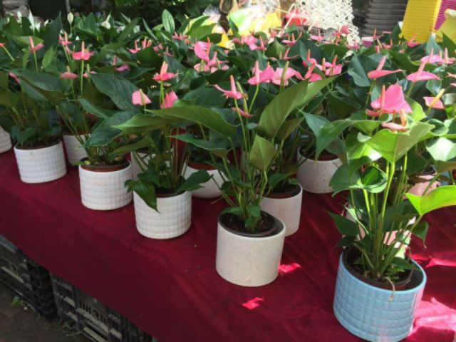 Nhà cửa & Đời sống > Làm vườn > Cây cảnh || Cây Hông Môn hoa màu hồng hoặc đỏ để bànCòn hàng