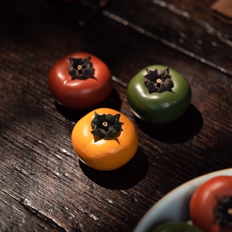 Vật nuôi trà: Quả Hồng—Chất gốm.