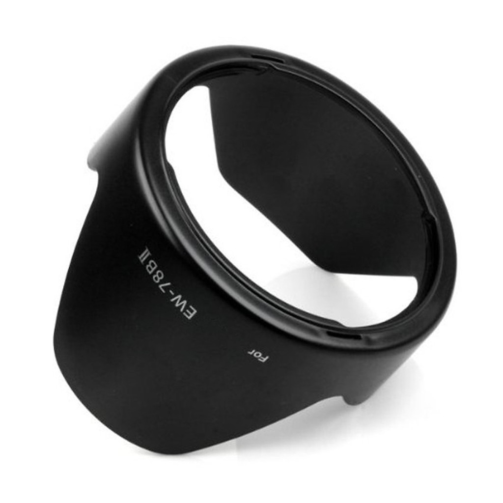 - Hood Canon EW78B II Giúp ngăn không cho ánh sáng từ 2 bên chiếu vào những thấu kính ngoài cùng. Nếu không ngăn ánh sáng từ những nguồn này, ảnh sẽ bị vết mờ (flare) và giảm độ tương phản (contrast). Khi sử dụng loa che nắng, ảnh sẽ cho màu sắc thực hơn (richer color) và có độ sâu hơn (deeper saturation).
