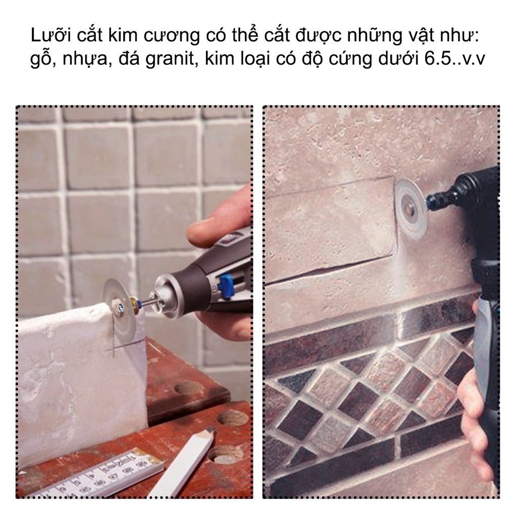 Lý tưởng cho cắt các loại vật liệu như thủy tinh, gạch,đá, gỗ, nhựa, ván ép, thạch cao, kim loại và nhiều loại vật liệu khác..