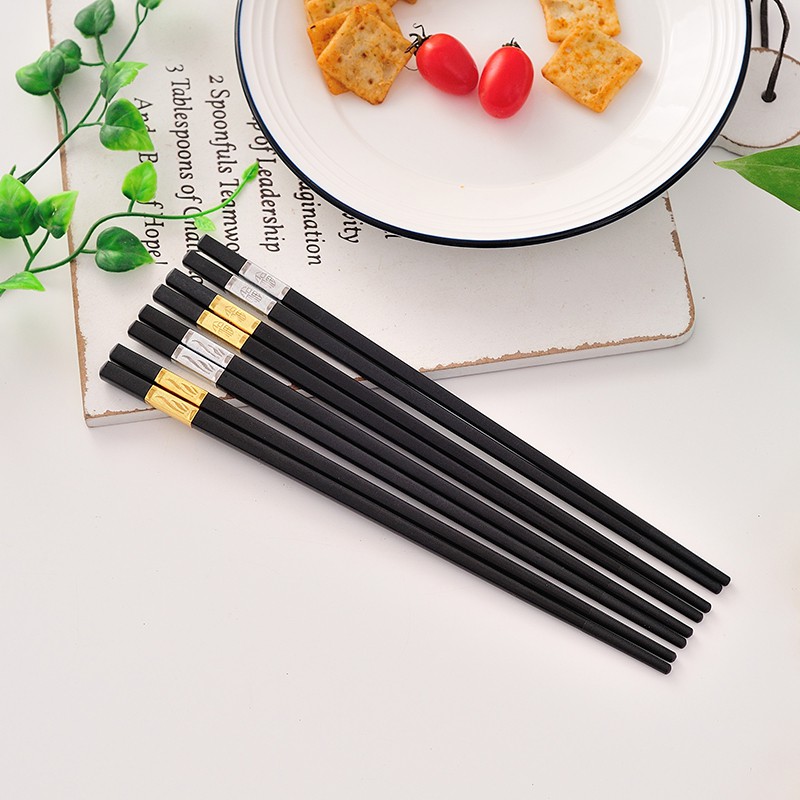Hộp 10 đôi đũa đen đầu mạ vàng cao cấp GOTL GD101