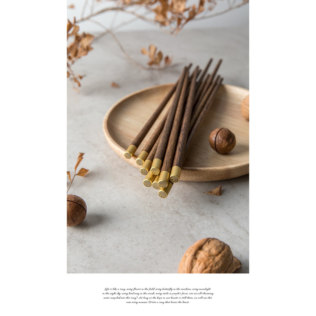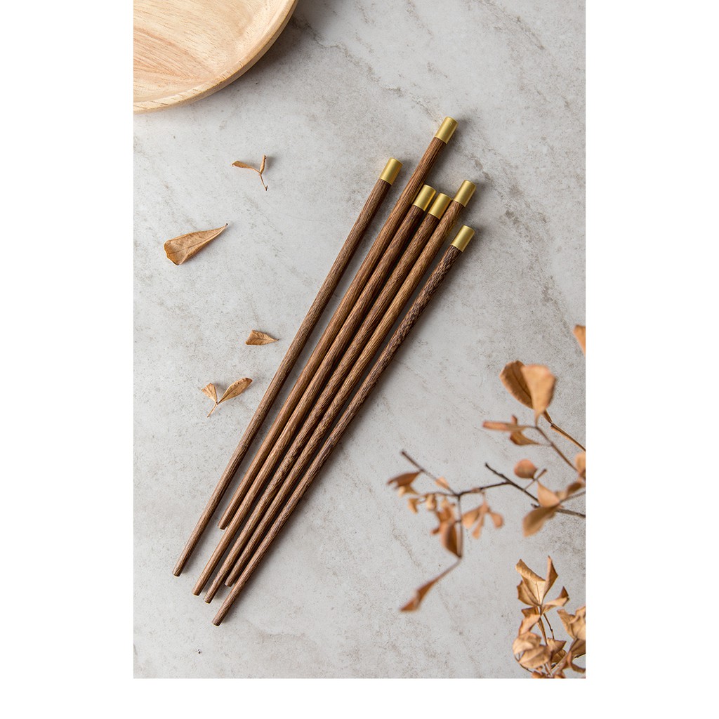 Hộp 10 đôi Đũa gỗ cánh gà bọc đồng cao cấp phong cách Nhật Cici Home phụ kiện gia đình