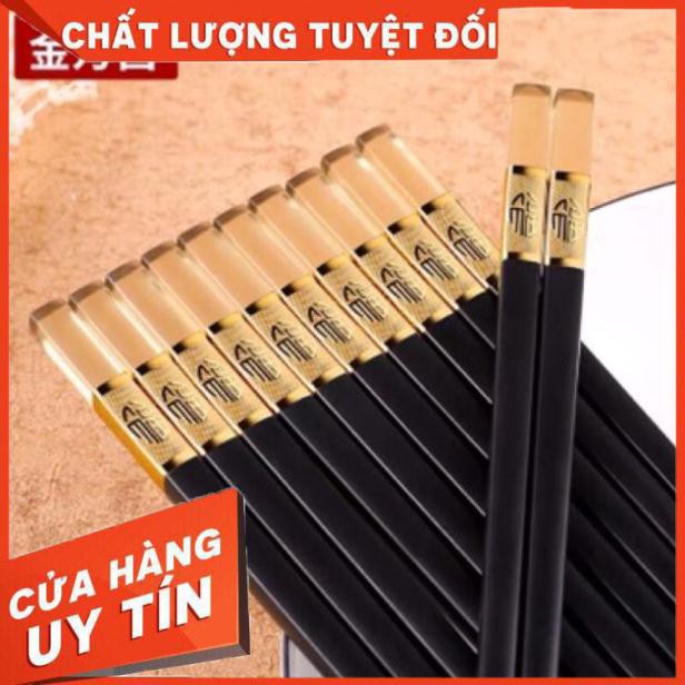 Nhà cửa & Đời sống > Bộ đồ bàn ăn > Bộ dao kéo || Hộp 10 Đôi Đũa Hợp Kim Mạ Vàng Hổ Phách 27CM Cao Cấp Xuất Hàn - K54Còn hàng