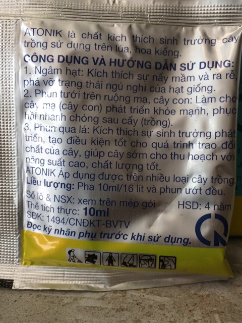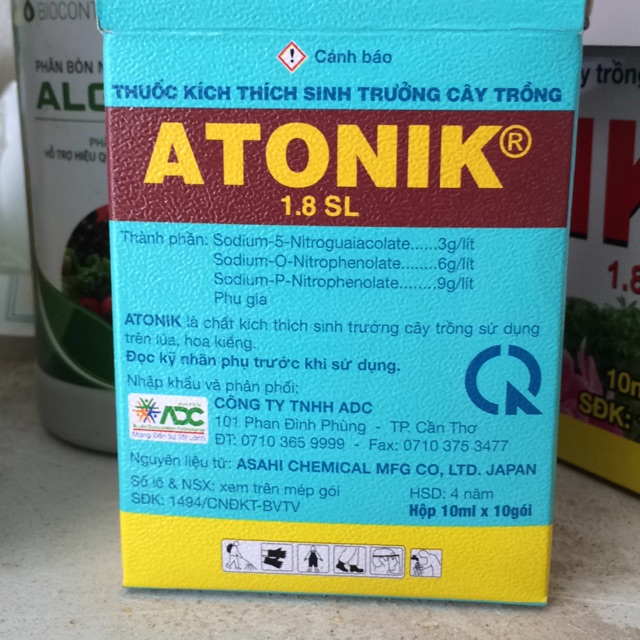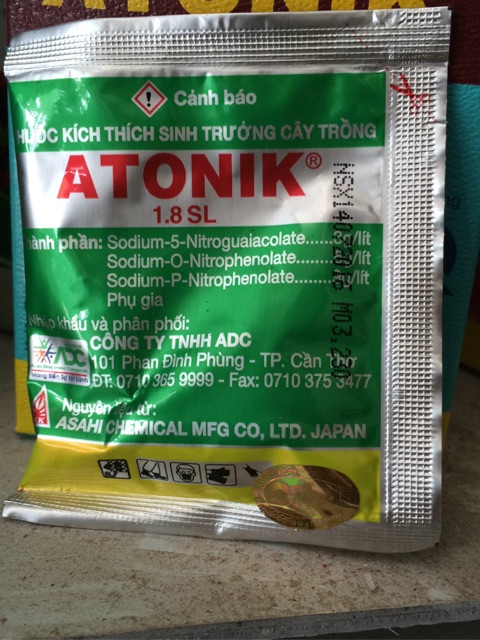 - Gói 10ml/ gói, 10 gói/ hộp- Với thành phần chính là các Nitro thơm, Atonik giúp cây bật chồi, bật mầm mạnh, tăng cường màu xanh lá giúp cây quang hợp mạnh, tăng khả năng chống chịu sâu bệnh