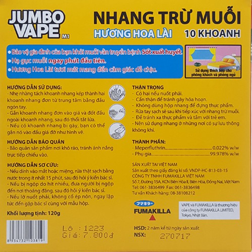 Hộp 10 khoanh nhang muỗi Jumbo hương lài