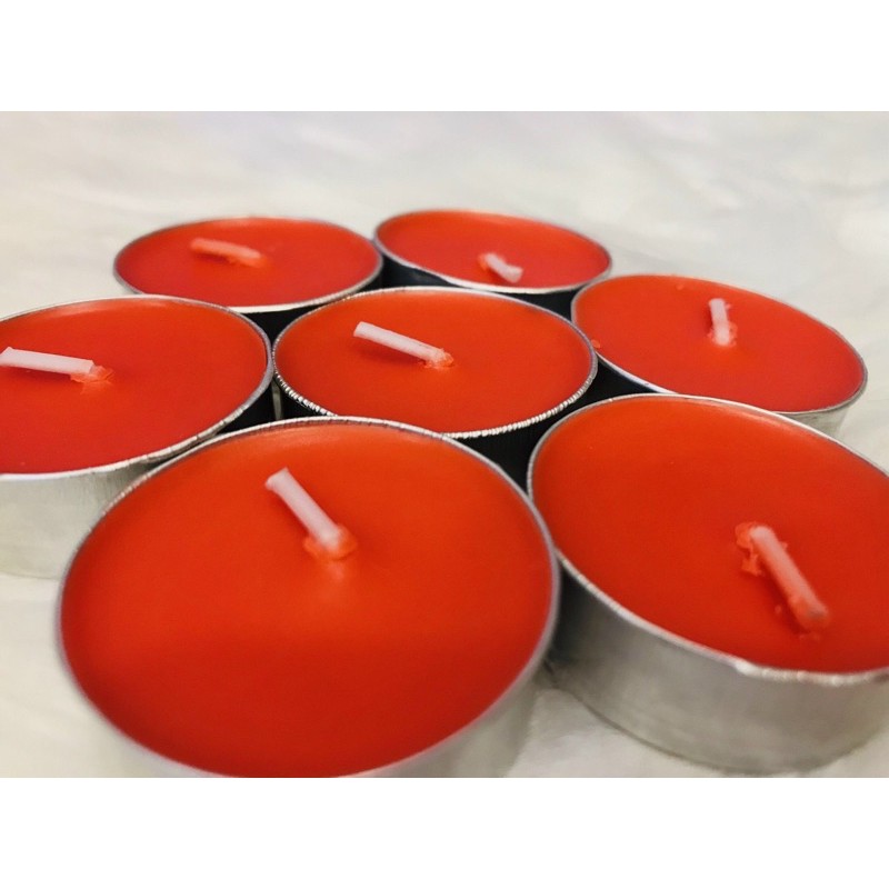 Hộp 10 ly nến bơ tealight đốt cháy 4 tiếng màu đỏ, không mùi không khói, không ảnh hưởng môi trường.Giá URAon