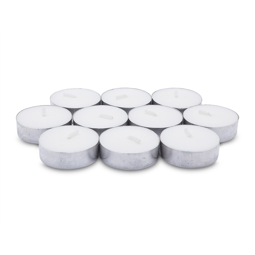 - Sản phẩm được bọc trong một cốc kim loại mỏng, thời gian đốt cháy của một viên nến tealight thường vào khoảng từ 3 đến 4 tiếng.