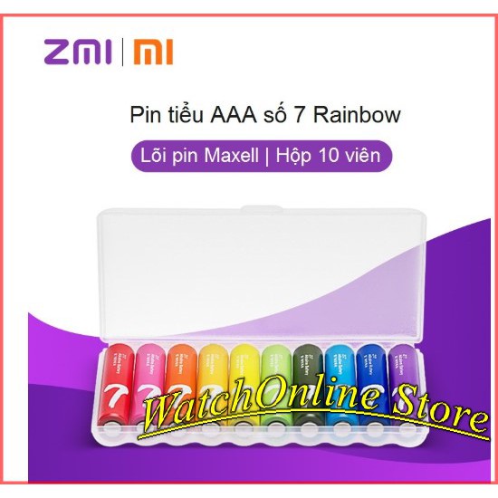Sản phẩm bao gồm hộp 10 viên pin tiểu AAA, Xiaomi. Lõi pin đến từ Maxell, nhà sản xuất pin nổi tiếng với chất lượng đã được khẳng định, nay Xiaomi hợp tác với Maxell cho ra hộp pin với đủ màu sắc như tên gọi của nó: Xiaomi RainbowGiá BUT