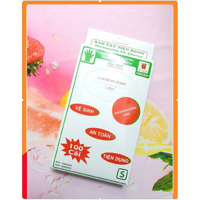 Hộp 100 bao tay nilon ⚡ HÀNG LOẠI 1 ⚡ bao tay nilon dùng 1 lần chuyên dụng bảo vệ da tay
