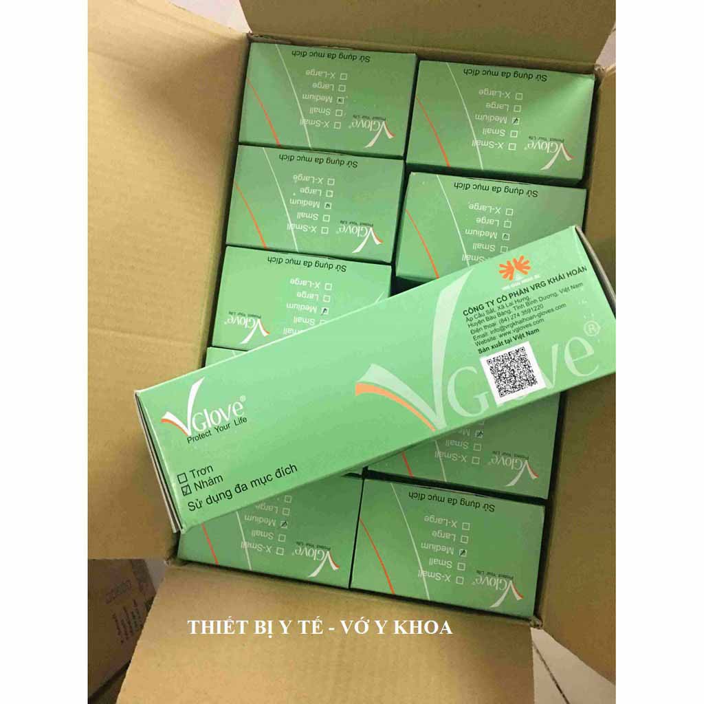 Giới thiệu [Hộp 100 Chiếc ] Găng Tay Cao Su Y Tế Vglove Nhám Không Bột Full Size(XS,S,M,L,XL)"