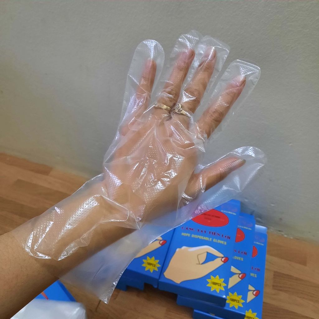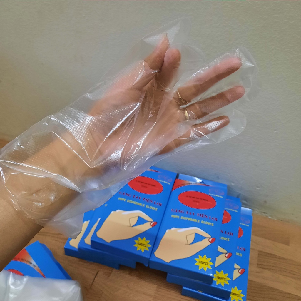 Nhà cửa & Đời sống > Dụng cụ & Thiết bị tiện ích > Găng tay, kính bảo hộ & mặt nạ || Hộp 100 chiếc găng tay nilon dùng 1 lần dai, bền, tiện dụngCòn hàng