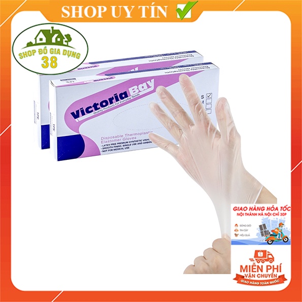 - Găng tay làm bếp nấu ăn vệ sinh Victoria Bay được làm từ chất liệu TPE siêu dai, không mùi, chống nhăn hộp 100 cái, an toàn khi sử dụng.
