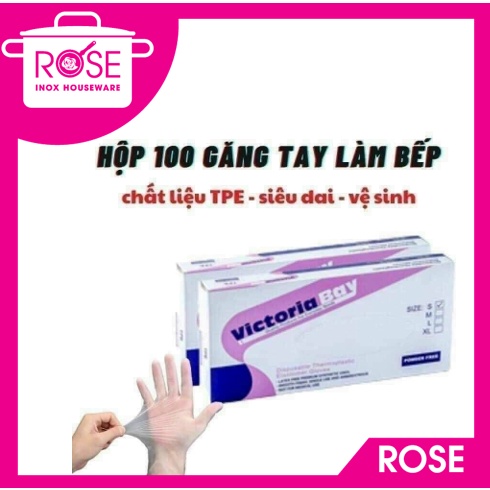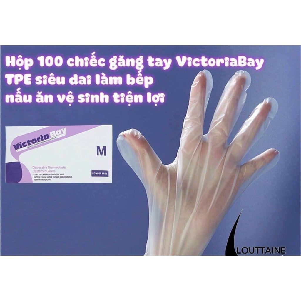 Hộp 100 Găng tay cao su VictoriaBay làm bếp vệ sinh siêu dai chất liệu TPE không mùi