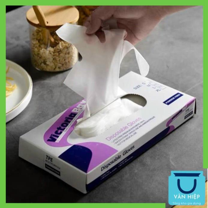 Hộp 100 găng tay cao su TPE Victoria Bay, bao tay siêu dai dùng 1 lần làm bếp nấu ăn vệ sinh