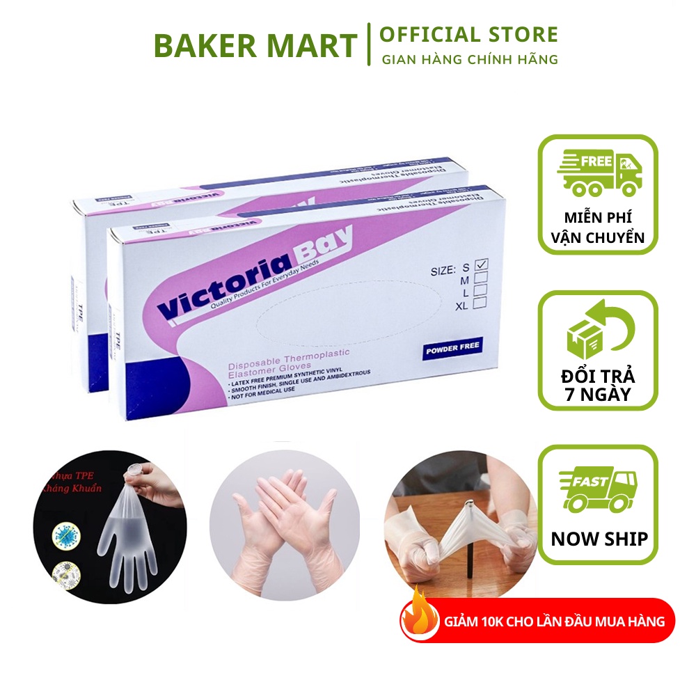 🧩Găng tay nấu ăn - găng tay làm bếp siêu dai Victoria Bay chất liệu TPE không mùi chống nhăn hộp 100 cái size M - Baker Mart🔥 Găng tay nilon siêu dai Victoria Bay, các chị dùng đi chợ, nấu ăn đều rất tiện.