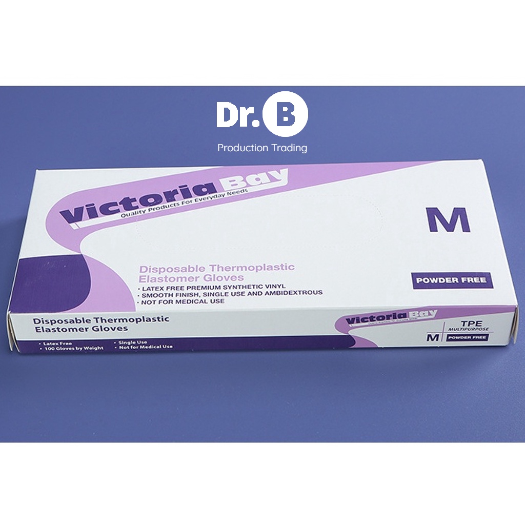 Hộp 100 găng tay cao su TPE Victoria Bay, bao tay siêu dai dùng 1 lần
