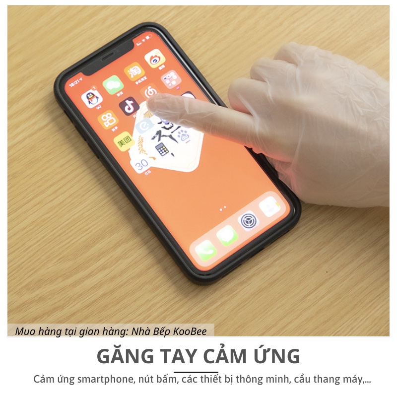 Nhà cửa & Đời sống > Dụng cụ nhà bếp > Tạp dề & gắng tay nấu nướng || Hộp 100 găng tay làm bếp TPE kháng khuẩn siêu dai cảm ứng điện thoại KooBee (CSNC13)Còn hàng
