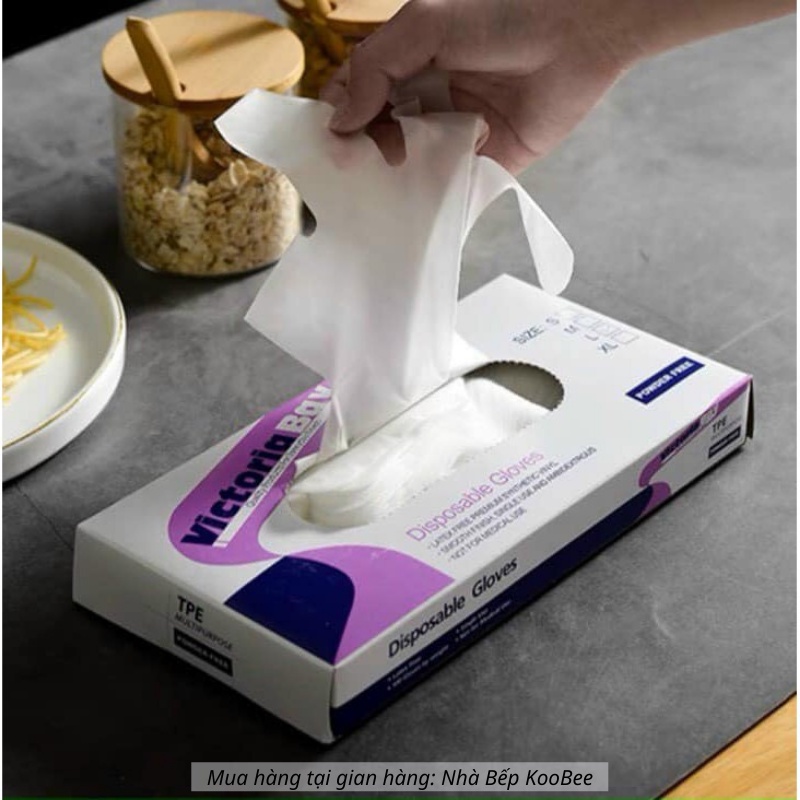 🔰TÊN SẢN PHẨM:Hộp 100 găng tay làm bếp TPE kháng khuẩn siêu dai cảm ứng điện thoại KooBee (CSNC13)