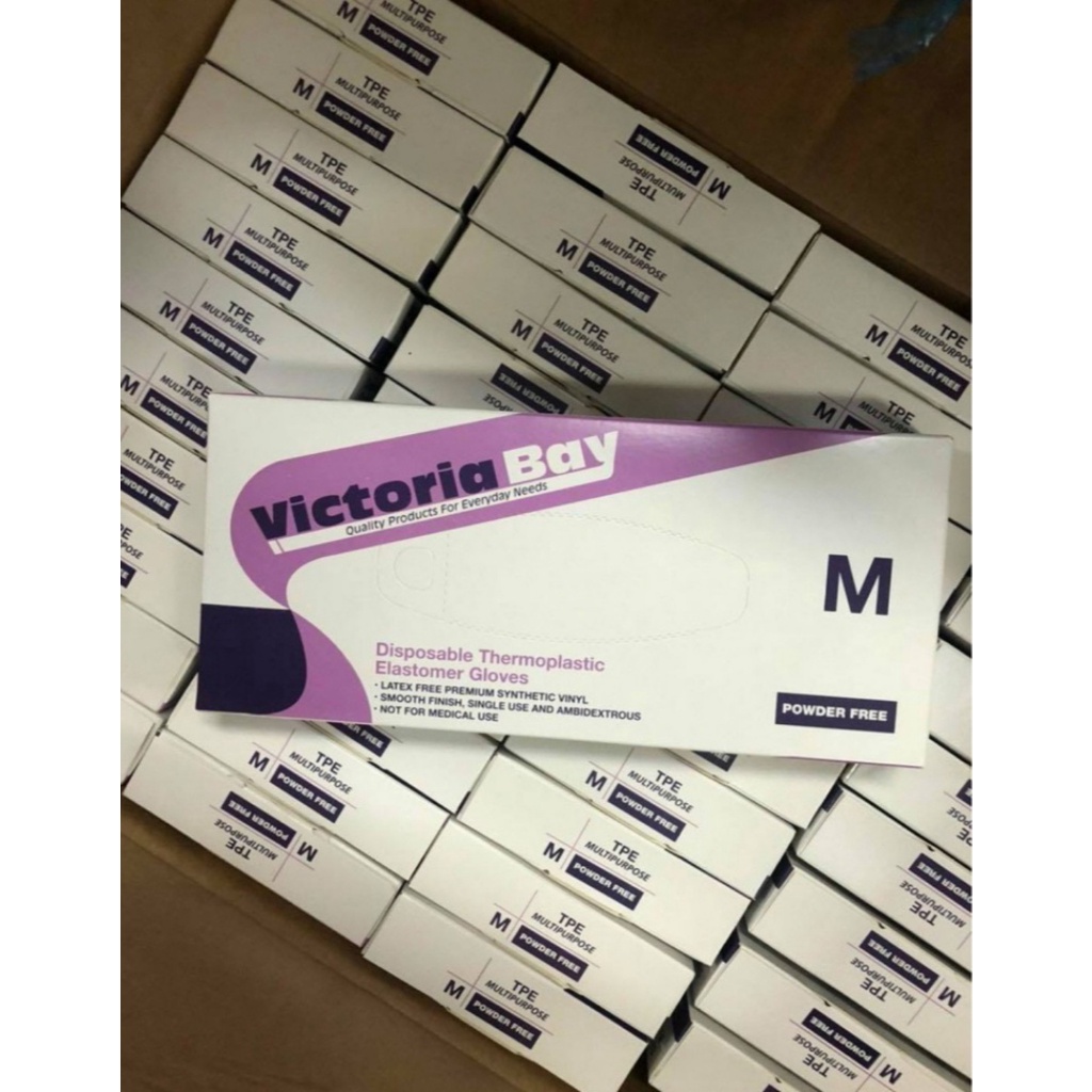 - Găng tay làm bếp nấu ăn vệ sinh Victoria Bay được làm từ chất liệu TPE siêu dai, không mùi, chống nhăn hộp 100 cái, an toàn khi sử dụng.