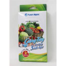 Hộp 100 găng tay nilong tự hủy sinh học Tuấn Ngọc: là hàng VN chất lượng cao được các bà nội trợ tin dùng vì nótrong suốt, bảo vệ tay, dùng trong chế biến thực phẩm gia đình, kỹ sư phòng thí nghiệm. Và đặc biệt là tự hủy sinh học nên rất thân thiện với môi trường