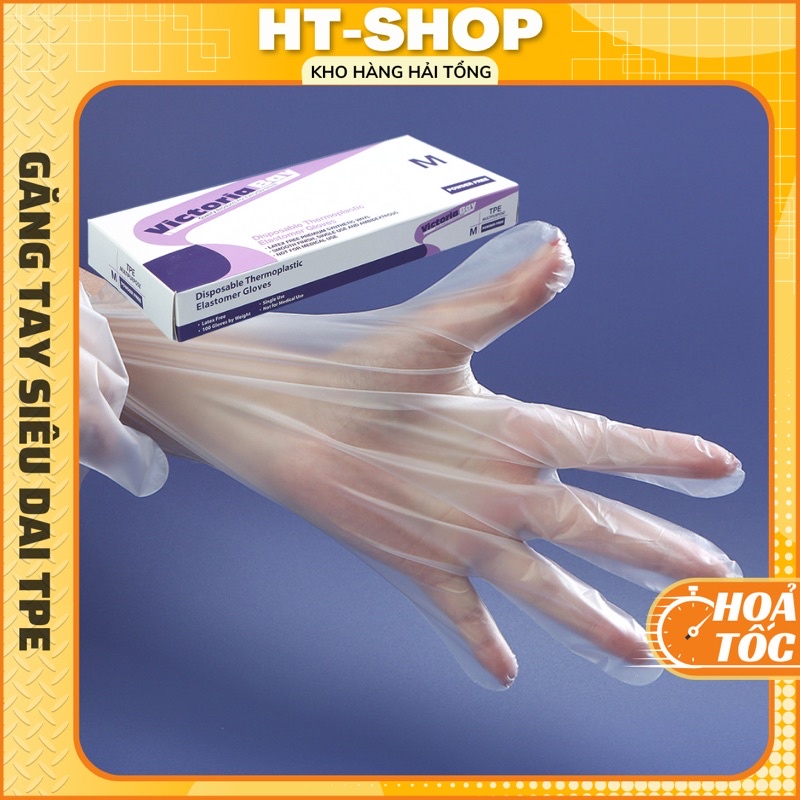 Giới thiệu Hộp 100 Găng Tay Rửa Bát làm Bếp vệ Sinh VictoriaBay Bao Tay Siêu Dai Chất Liệu TPE Không Mùi