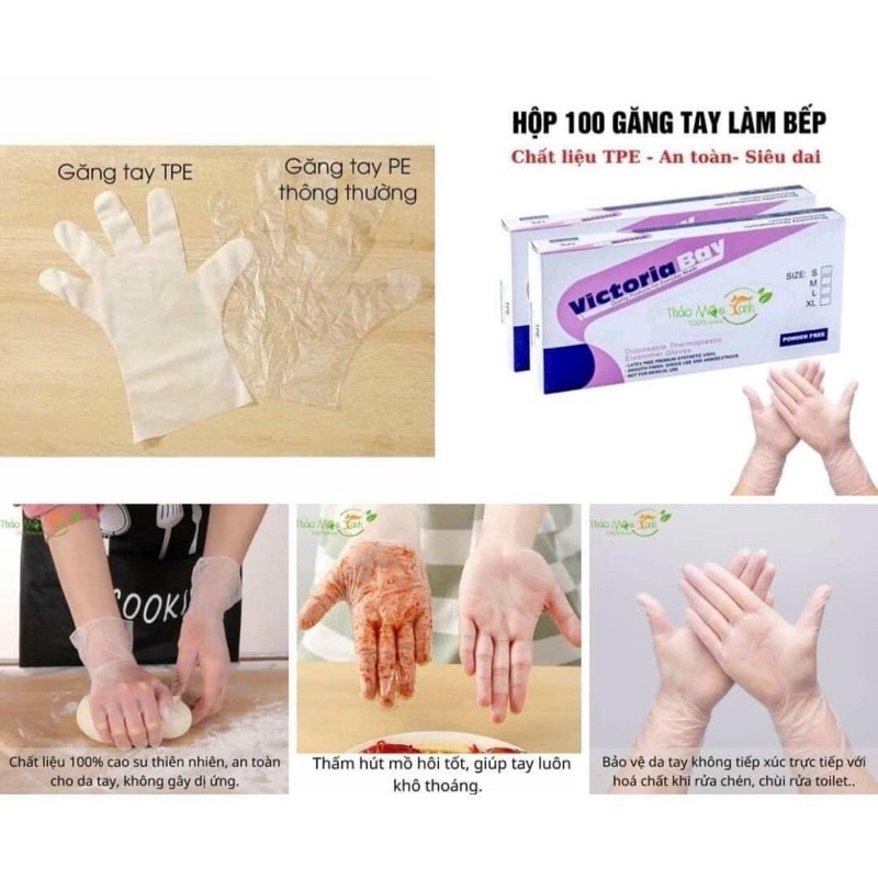 Hộp 100 găng tay thực phẩm thật tay siêu mỏng siêu dai chất liệu TPE
