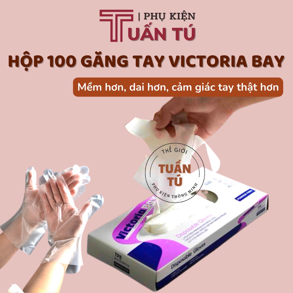 Hộp 100 găng tay Victoria Bay chất liệu TPE, Bao tay cao su rửa bát làm bếp vệ sinh siêu dai không mùi - Tuấn Tú Case