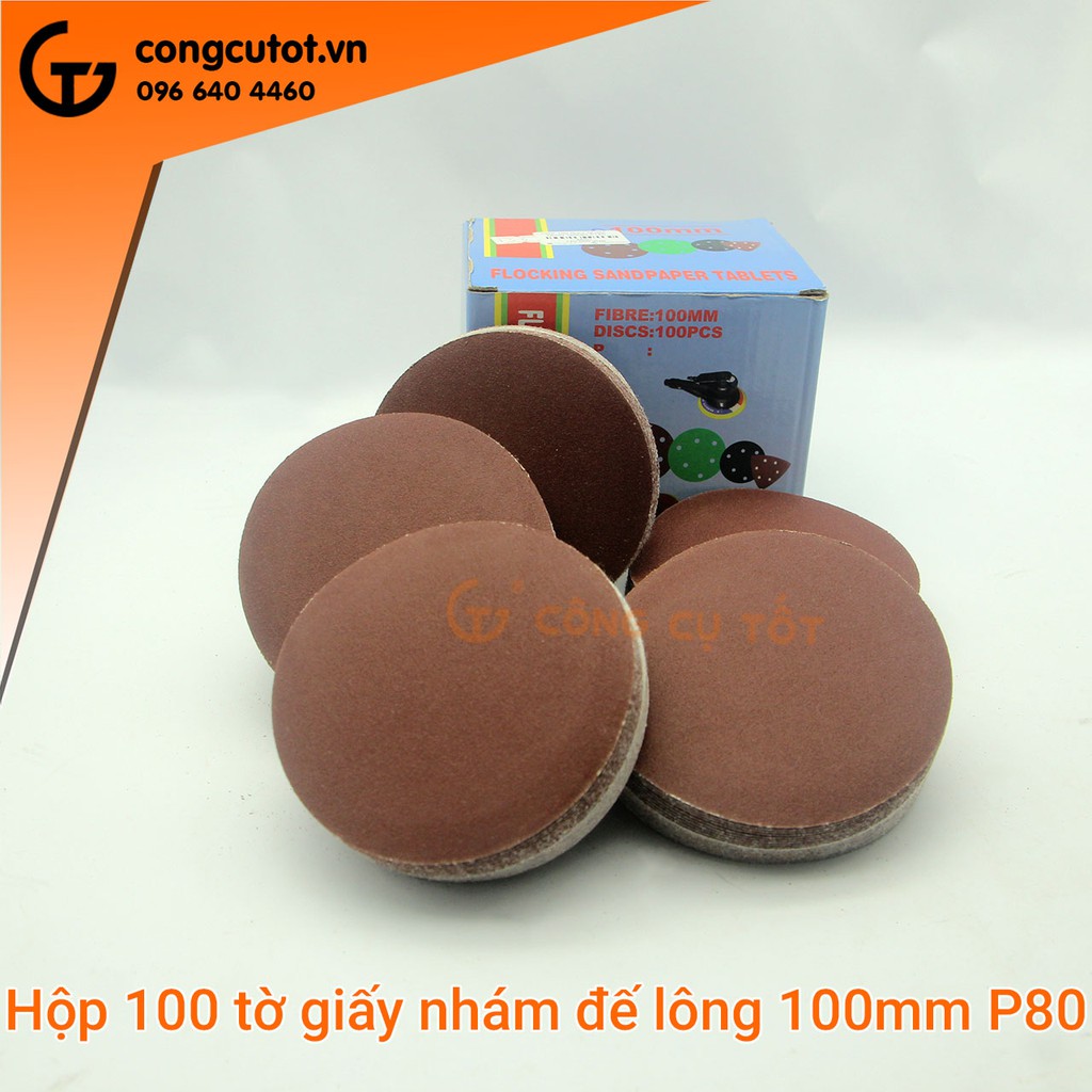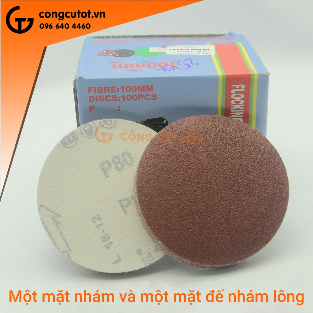 Hộp 100 giấy nhám tròn 100mm chuẩn P80