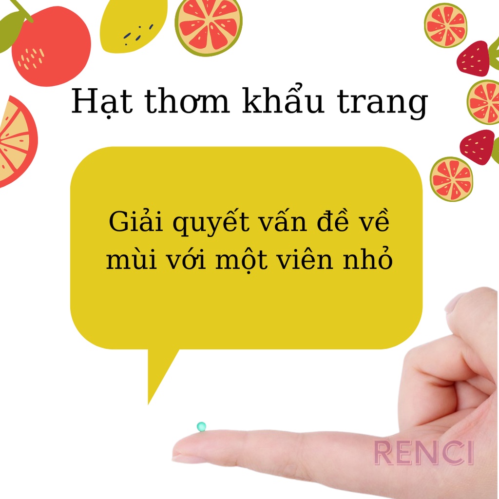 Hạt hương trái cây cho khẩu trang làm mát không khí chống mùi thơm mát không có mùi mồ hôi. Thích hợp cho KN95, N95, KF94 FFP2Sản phẩm viên thơm khẩu trang là sản phẩm giảm thiểu các mùi hôi, khó chịu khi sử dụng khẩu trang lâu, thời gian dài.