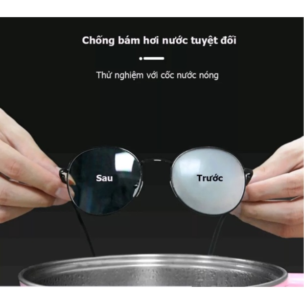 - Chuyên trị sương mù đọng trên kính, hơi nước trong môi trường máy lạnh, bám hơi nước trong hơi thở khi đeo khẩu trang