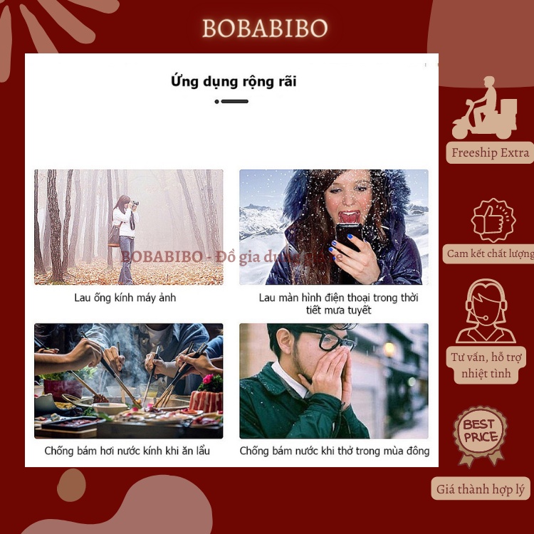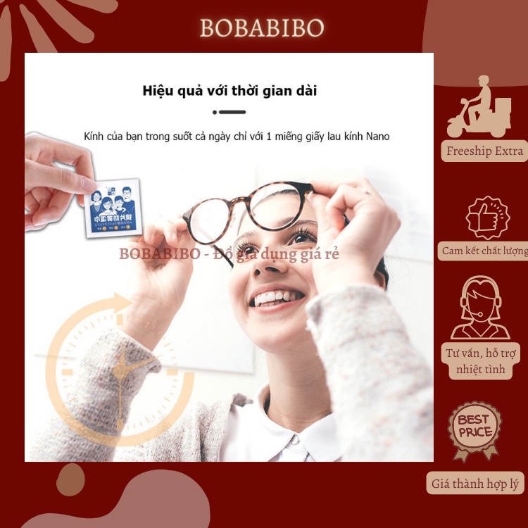 Hộp 100 Miếng Lau Kính Nano Chống Hơi Nước, Khăn Lau Kính Chống Bám Hơi Nước Công Nghệ Nanno Cho Mắt Kính, Điện Thoại Bobabibo⚡️Đặc điểm nổi bật: