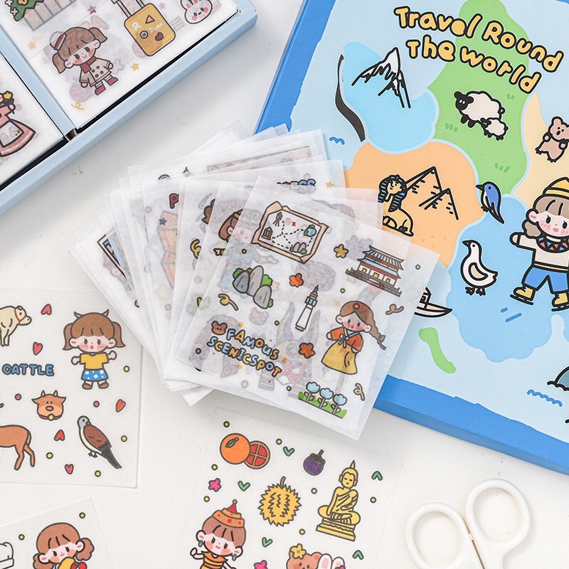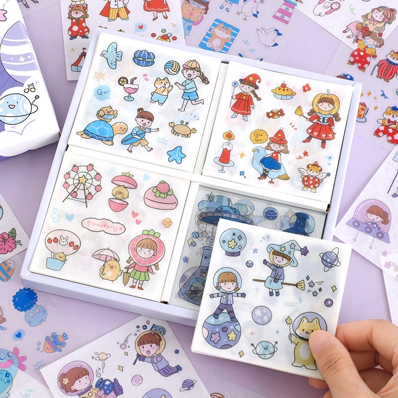 Hộp 100 tấm hình dán cô gái đáng yêu
