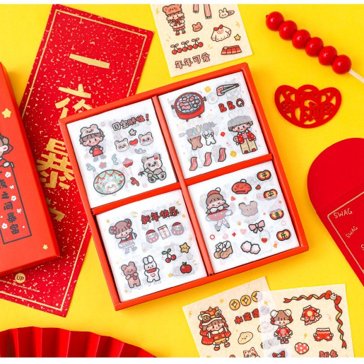 Hộp 100 tấm hình dán cô gái đáng yêuKích thước hình dán: 80*80mm