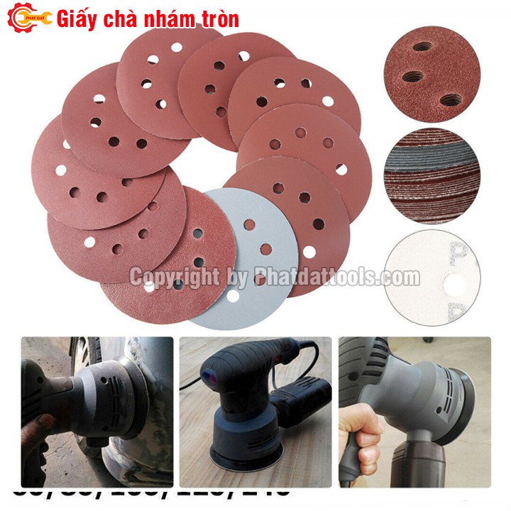 Nhà cửa & Đời sống > Dụng cụ & Thiết bị tiện ích > Dụng cụ > Giấy nhám, máy chà nhám và phụ kiện || Hộp 100 tờ giấy chà nhám tròn các size 125mm-180mm-230mm-Độ nhám P40-P240Còn hàng