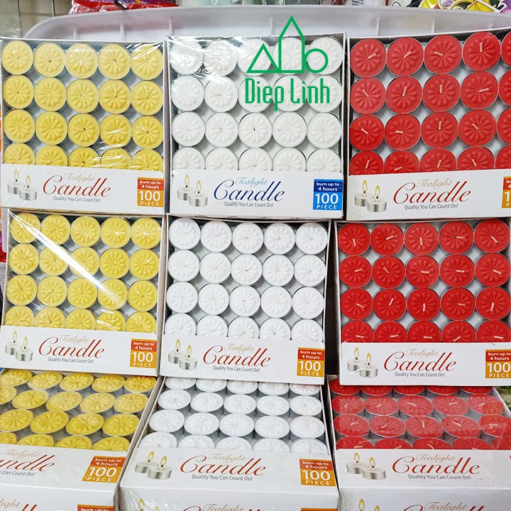Hộp 100 Viên Nến Tealight Cháy 4h ( Trắng Đỏ Vàng )