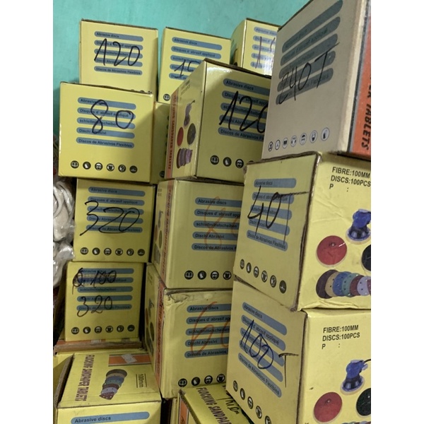 Nhà cửa & Đời sống > Dụng cụ & Thiết bị tiện ích > Dụng cụ > Giấy nhám, máy chà nhám và phụ kiện || Hộp (100miếng) giấp ráp tròn có lông dính, giấp giáp dán cho đế đánh máyCòn hàng