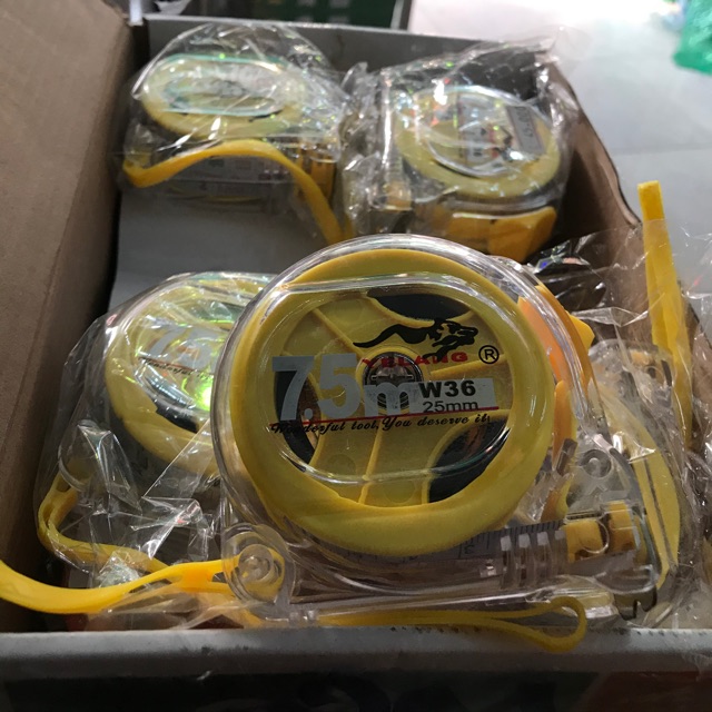 Nhà cửa & Đời sống > Dụng cụ & Thiết bị tiện ích > Dụng cụ > Dụng cụ đo lường || Hộp 12 cái thước cuộn trong 2 mặt (1 lỗ ban + 1 thường) dài 7,5mCòn hàng