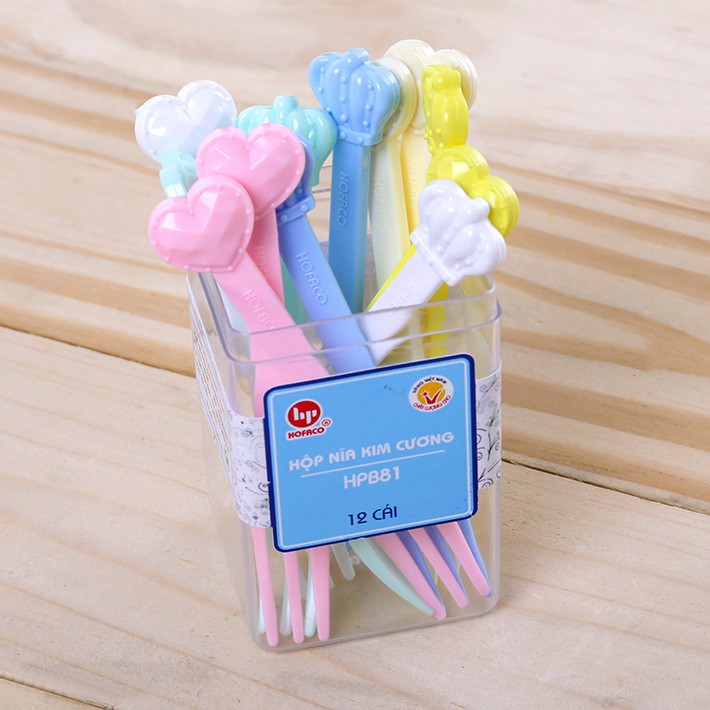 Hộp 12 dĩa/nĩa ăn kim cương trái cây, bánh sinh nhật HPB81